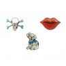 Set di tre Simpatiche Spille magnetiche Led lampeggiante.Teschio, Labbra, Dalmata.