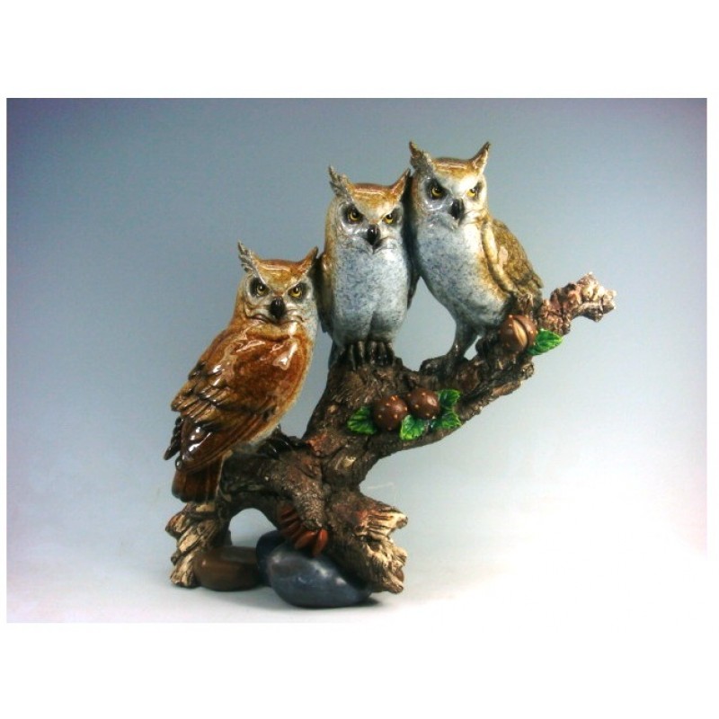- SPLENDIDO TRIS DI GUFETTI BOMBONIERA STATUETTA RESINA GUFO OWL PORTAFORTUNA H:30Cm