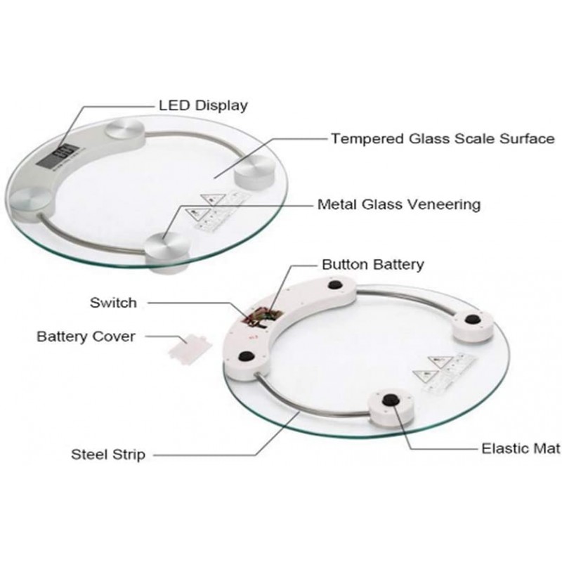 Bilancia elettronica digitale costruita e concepita per pesare fino a 180 Kg. Composta da una base in vetro,rende possibile che la bilancia possa essere collocata in tutti gli ambienti domestici con qualsiasi tipologia d'arredamento.Il funzionamento è dato dalle batterie CR 2032, oltretutto, la bilancia dopo trascorso un periodo d'inattività, si spegne automaticamente per evitare un consumo superfluo delle batterie. Caratteristiche tecniche:Bilancia pesa-persone digitale con display lcd termometro temperatura ambientale integrato,Si accende con il peso del piede,Resettaggio automatico,Spegnimento automaticoIndicatore di sovraccaricoIndicatore di batterie scaricheCapacità di pesatura: 180 Kg. - con divisione 100 gr.Doppia unità di misura (Kg e libbre)Struttura in vetro La confezione contiene:Nr. 1 Bilancia digitale