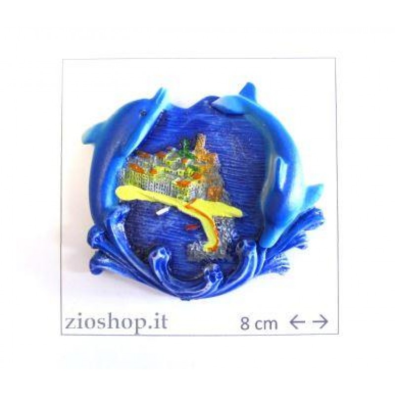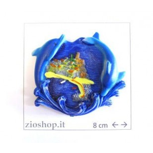 Calamita Magnete Frigo Fridge Magnets PAESAGGIO MARE CON DOPPIO DELFINI SU ONDA