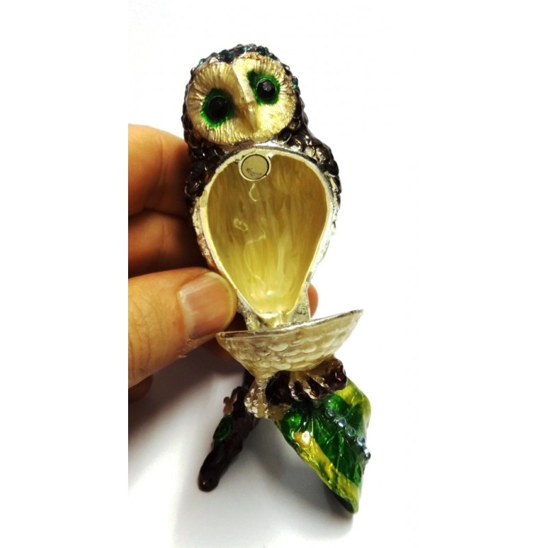 BOMBONIERA COFANETTO PORTAGIOIE IN CLOISONNE SMALTATO PORTAFORTUNA CIVETTA SU RAMO