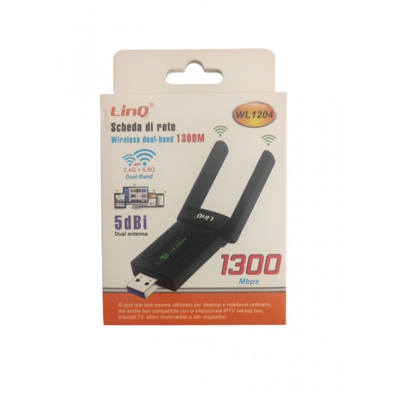 - LINQ SCHEDA DI RETE WIRELESS DUAL-BAND 2.4G-5.8G 1300Mbps 5dBi WL1204