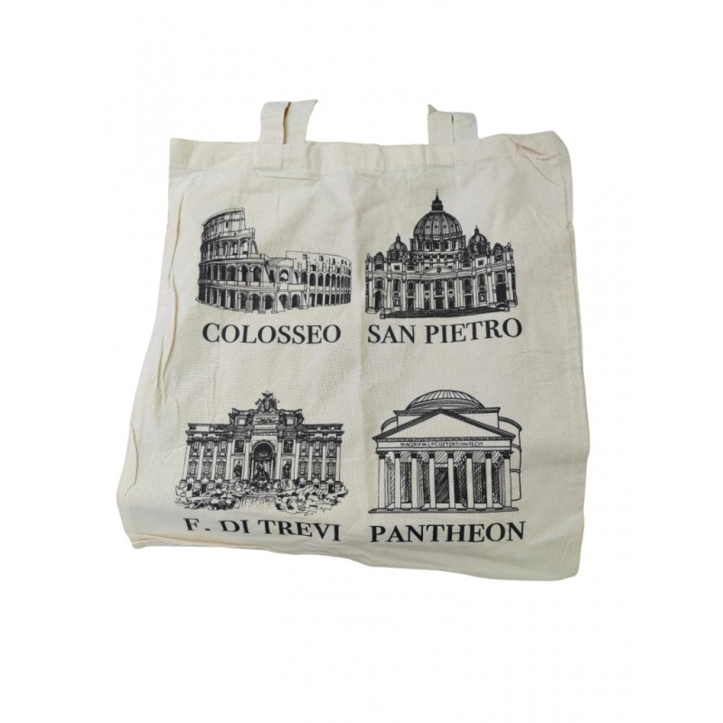 Borsa Shopper Tote Bag in Tela Resistente Souvenir Roma Italia Monumenti Vari