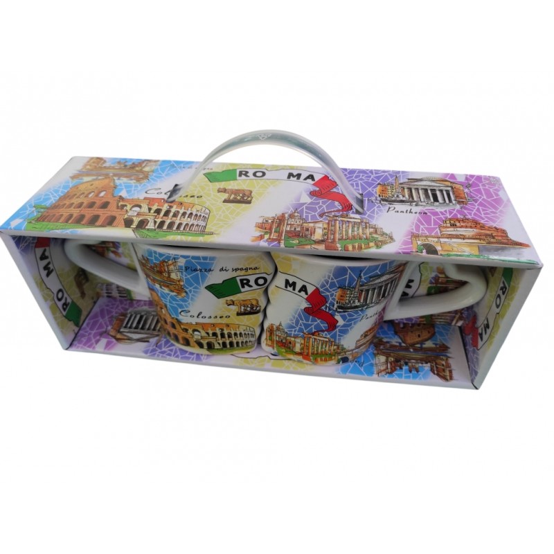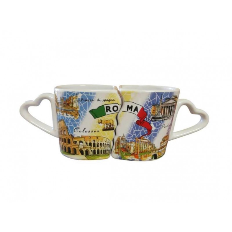 Un ricordo romantico di Roma Tazze a Coppia Souvenir Roma con il manico dell'impugnatura a forma di cuore, avvicinando le due tazze si formano due innamorati che si baciano. Le tazze a coppia e' un bellissimo ricordo romantico e un indimenticabile souvenir da Roma.