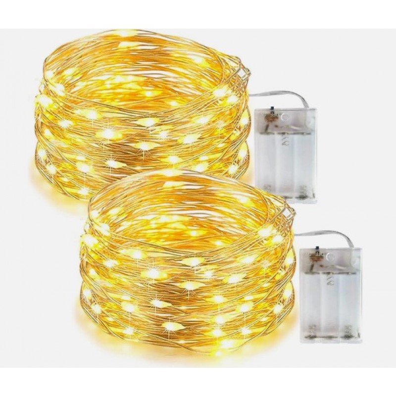 - Questa catena luminosa a filo è composta da 100 LED con un angolo del fascio di 360 gradi. Sono necessarie 3 batterie AA (non incluse). Il filo d'argento isolato mantiene le lampade a basse temperature in modo che possano essere toccate dopo molte ore di funzionamento senza il rischio di ustioni. Le lucine a LED non danneggerebbero bambini e animali domestici.