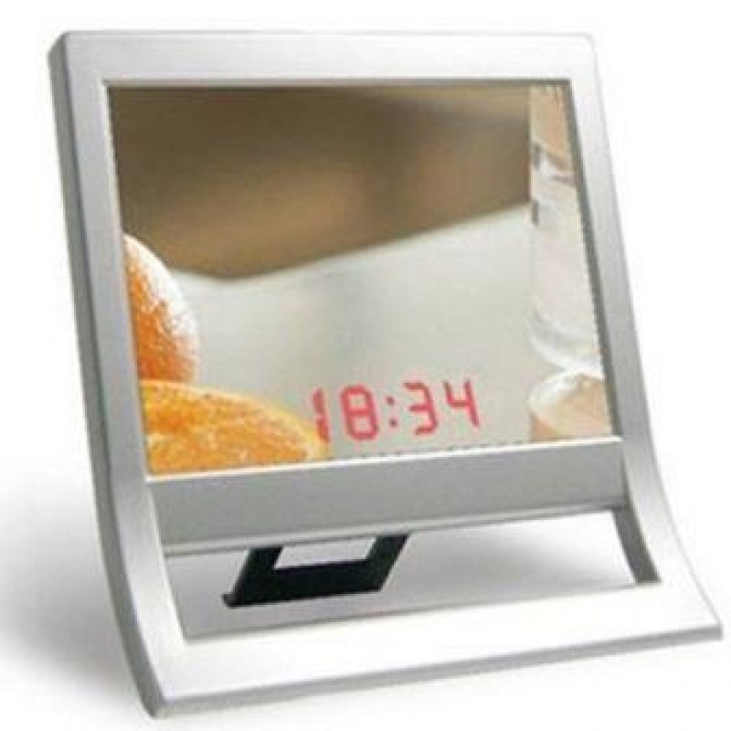 Dietro lo specchio è presente un interruttore on/off per accendere i led led dell'orario. Dimensione specchio 13x10 puo essere alimentato a batterie o con u n alimentatore universale 4.5 V