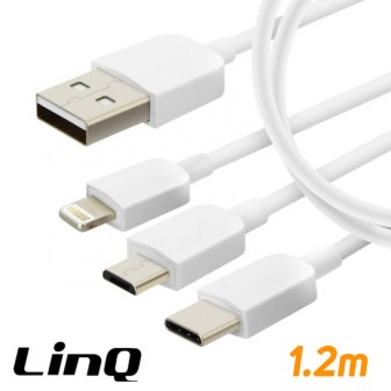 - Cavo di Ricarica Charger 3-in-1 Micro USB / Lightning / USB Type C, 1.2m - Bianco