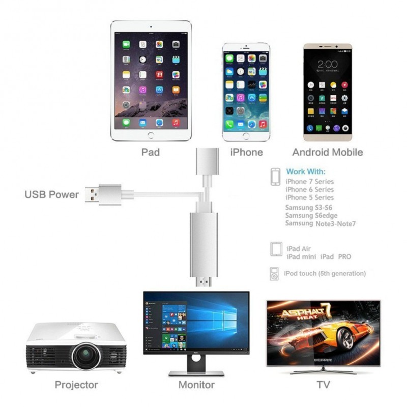 - Supporta il mirroring di ciò che viene visualizzato sul tuo Phone - inclusi filmati, spettacoli televisivi, musica, video, audio, foto, file e altro ancora per il tuo HDTV dotato di HDMI, display, proiettore o altri display compatibili. Supporta l'uscita Full HD HDMI 1080P.