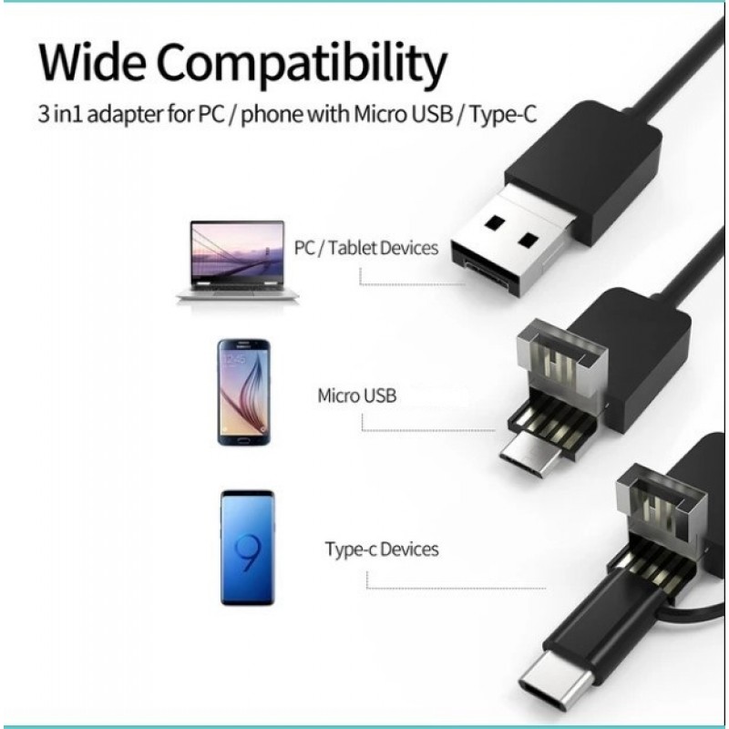 3 in 1 TYPE-C / Micro usb / USB Endoscopio Telecamera Di Ispezione 5 metri