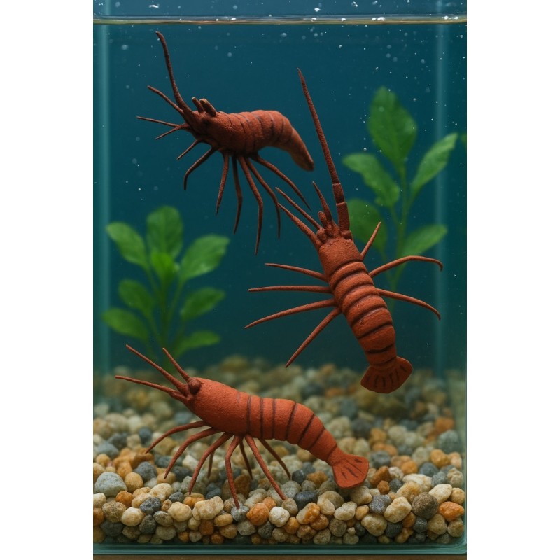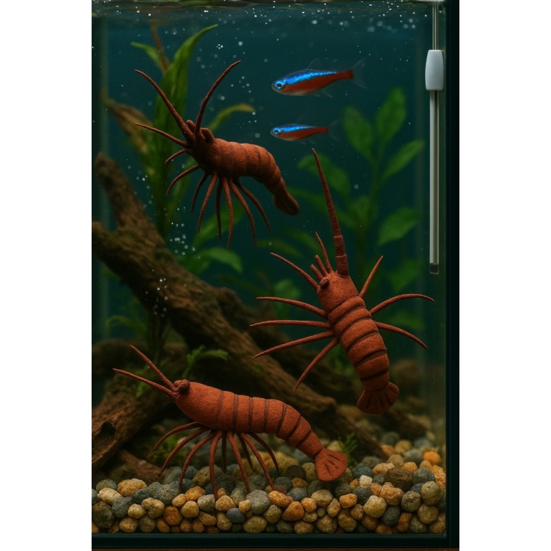 Abbiamo chiesto a un'intelligenza artificiale di immaginare queste aragoste di terracotta dentro un acquario... ed eccolììììììì! Le foto sono puramente dimostrative: non immergerle in acqua, altrimenti si sciolgono e tornano ad essere semplice argilla! Grazie alla sua anima in ferro, la forma dell’aragosta è modellabile a piacimento!