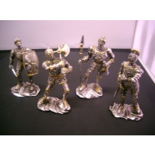 SOLDATO CAVALIERE MEDIEVALE SOLDATINI IN RESINA H:18cm ORO GRIGIO