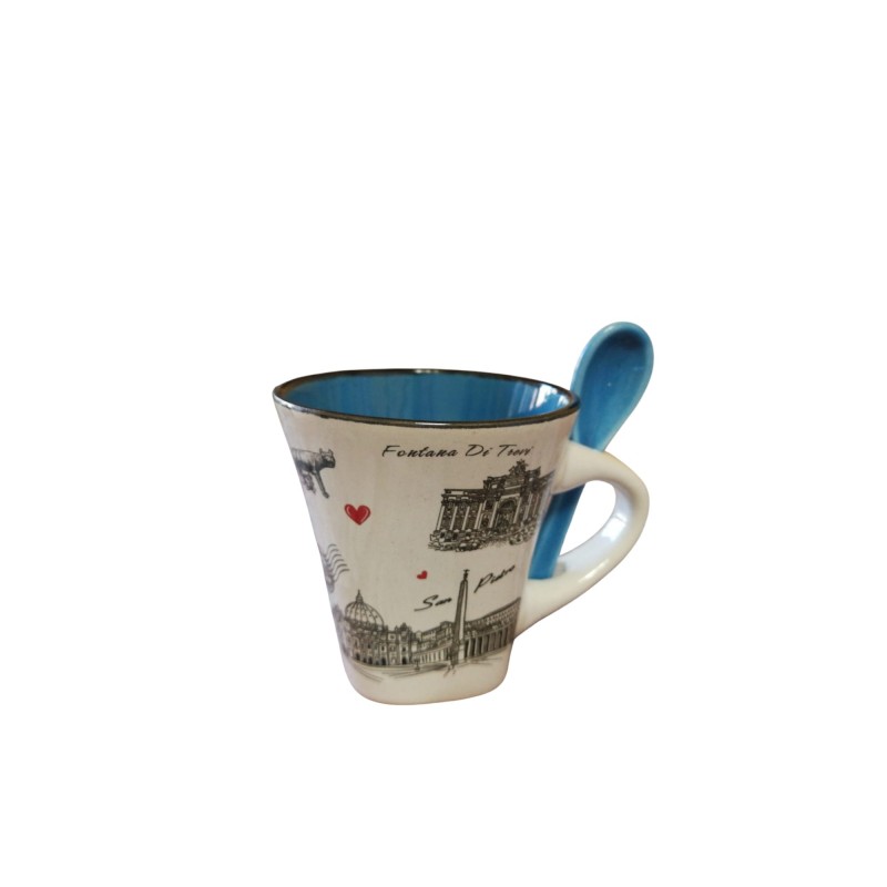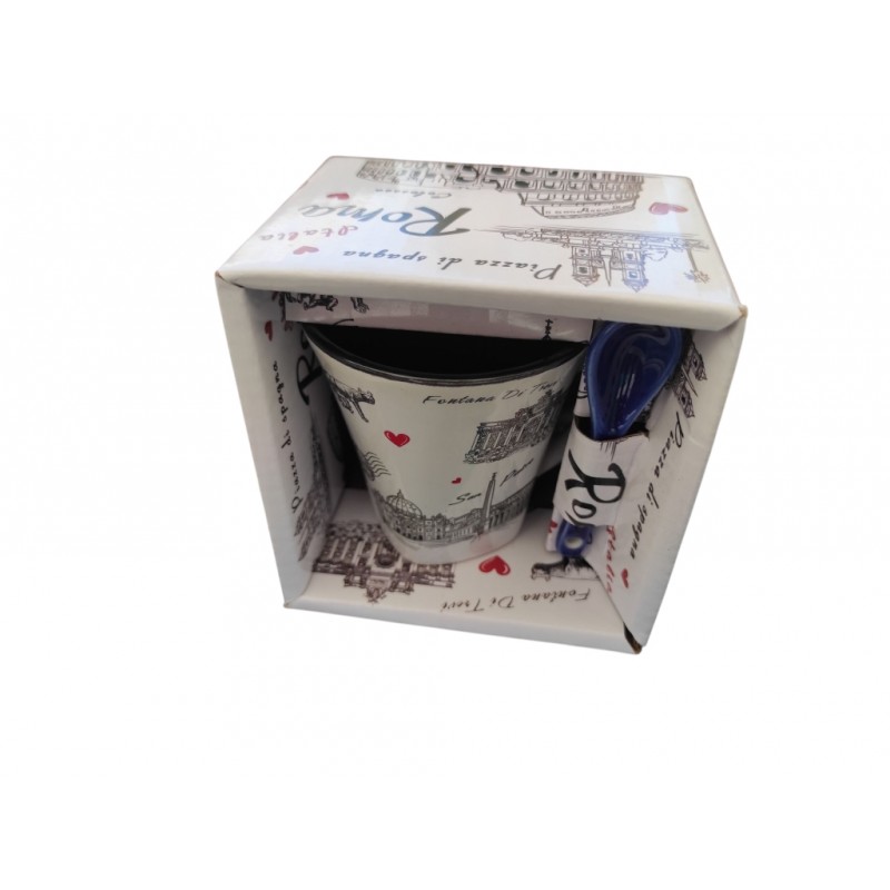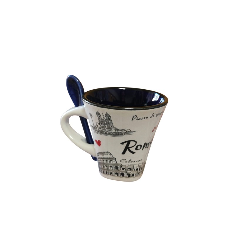 Tazza Tazzina da Caffe' con il cucchiaino Souvenir Ricordi Roma 5682