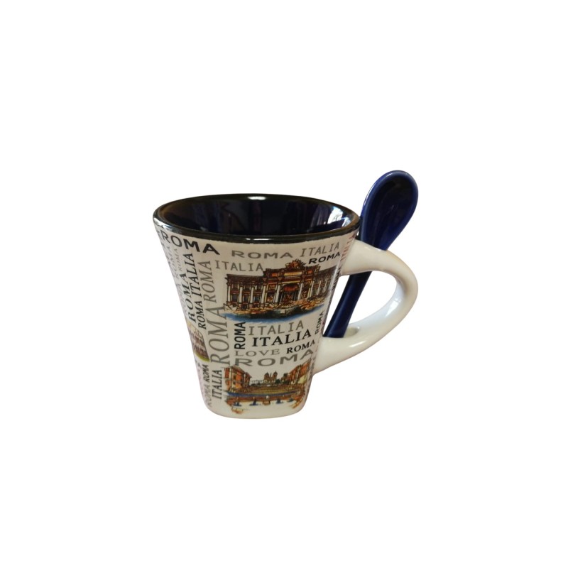 Tazza Tazzina da Caffe' con il cucchiaino Souvenir Ricordi Roma 5683