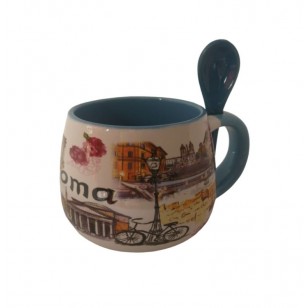 - Tazza Tazzina da Caffe' con il cucchiaino Souvenir Ricordi Roma 4653