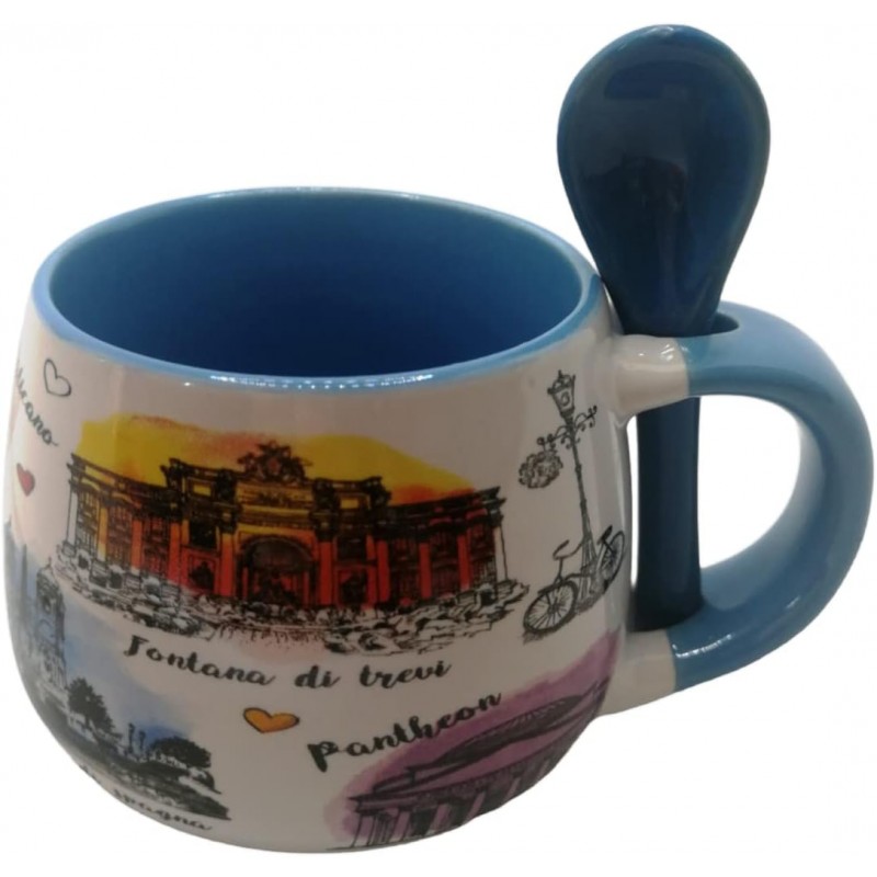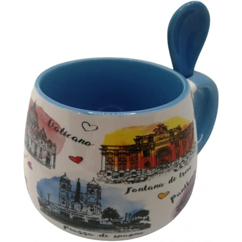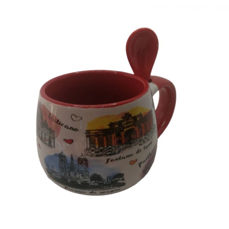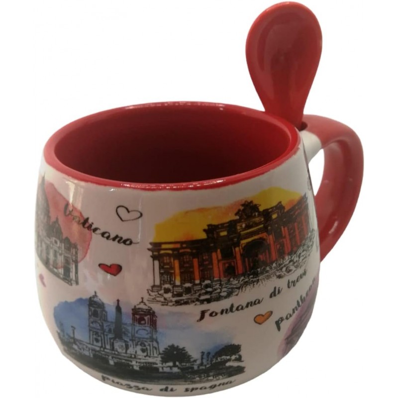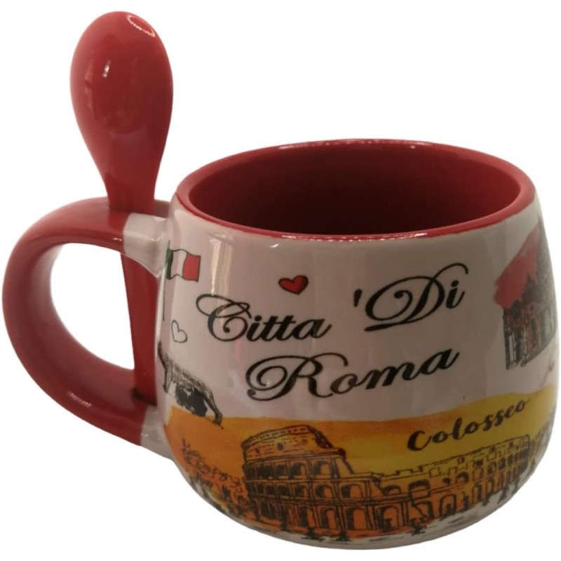 - Tazza Tazzina da Caffe' con il cucchiaino Souvenir Ricordi Roma 4654