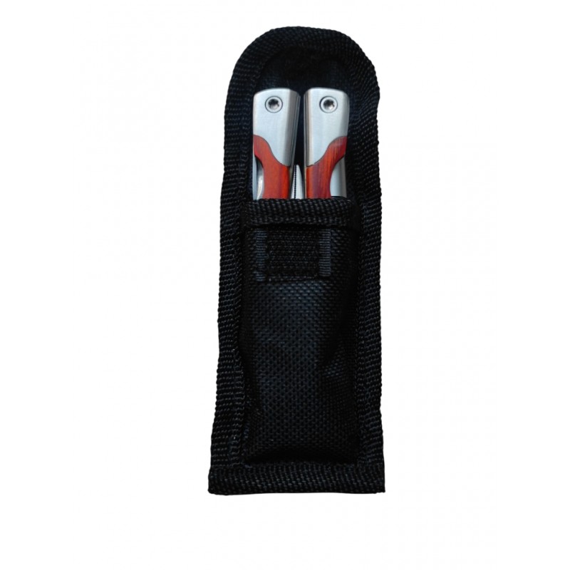 - Astuccio nero in tessuto in poliestere porta coltellino con passante per cintura incluso.