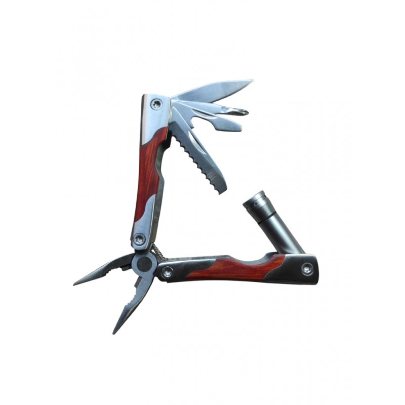 COLTELLINO PINZA ESCURSIONE CAMPEGGIO HOBBISTICA MULTIUSO METALLO E LUCE LED LEGNO ACCIAIO
