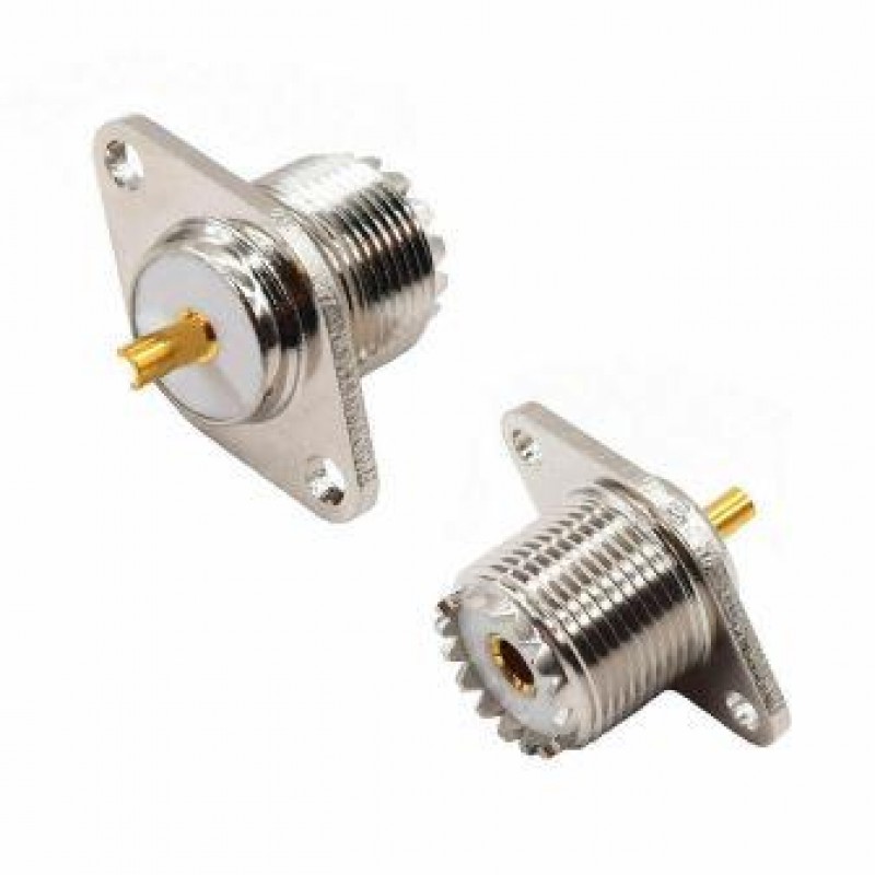 - CONNETTORE UHF FEMMINA PCB A SALDARE PANNELO FLANGIA 2 FORI