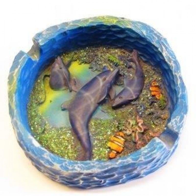POSACENERE IN RESINA DIPINTA A MANO 2+1 DELFINO SOUVENIR MARE 77-8736