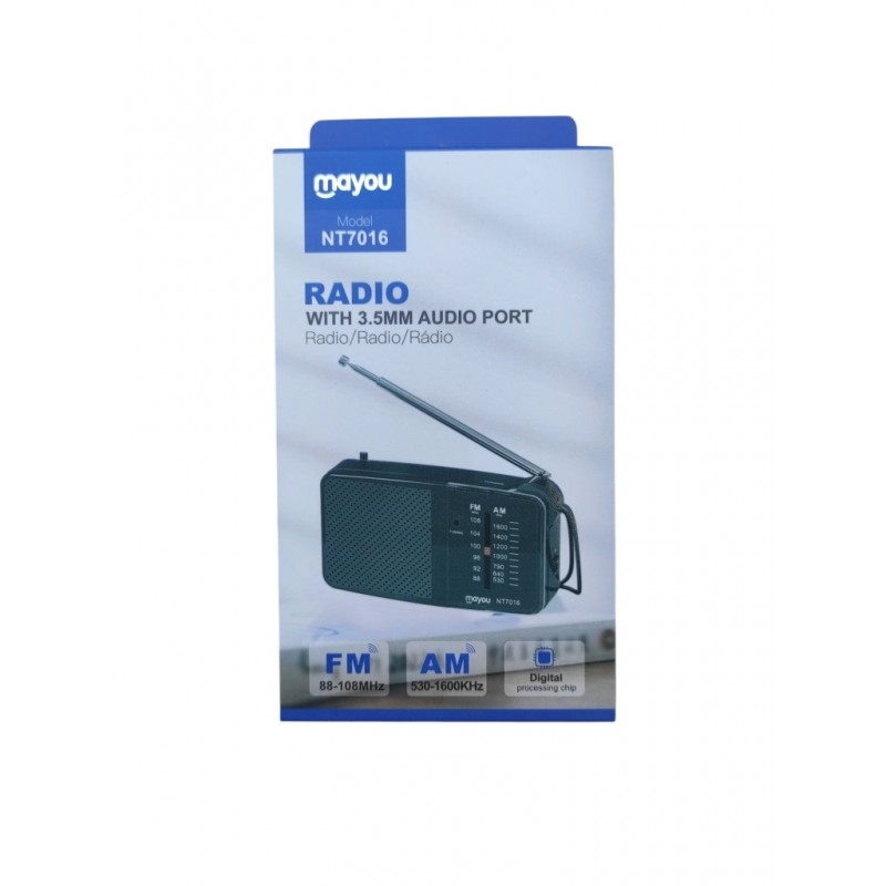 Compatta, funzionale e dal design classico, la radio portatile MAYOU modello NT7016 è la scelta ideale per chi cerca un dispositivo semplice e affidabile per ascoltare le proprie stazioni preferite ovunque. Perfetta per casa, campeggio, lavoro o ambienti esterni.