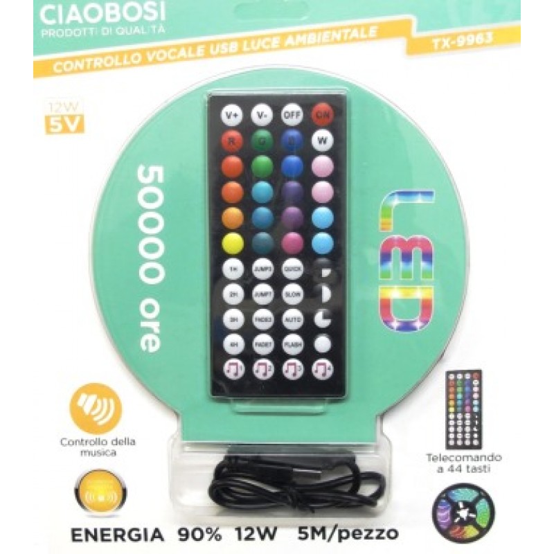 STRISCIA LED RGB USB 5MT TELECOMANDO 44 TASTI CON AUDIO CONTROL
