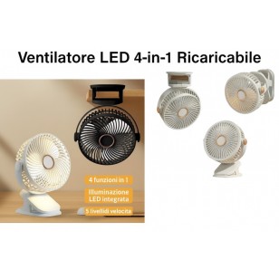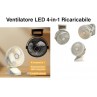 Ventilatore LED 4-in-1 Ricaricabile – Comfort e Luce Sempre con Te
